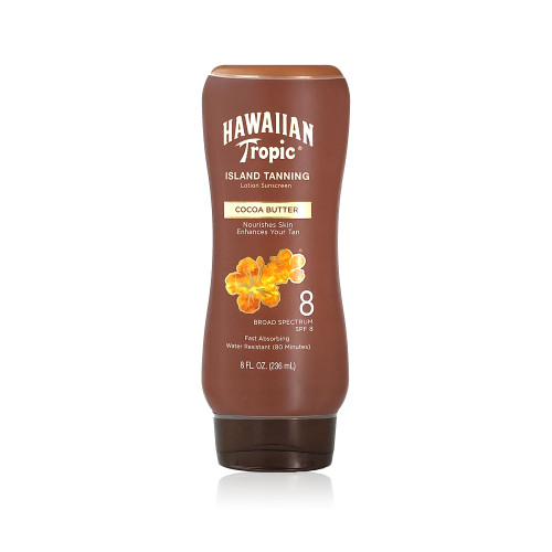 Immerse yourself in the essence of the tropics with Hawaiian Tropic Island Tanning Sunscreen Lotion SPF 8. This luxurious, fast-absorbing lotion not only enhances your tan but also nourishes your skin with rich moisturization. Infused with shea butter, cocoa butter, and exotic island botanicals, it leaves your skin feeling soft, smooth, and radiant. The iconic tropical fragrance transports you to paradise with every application.