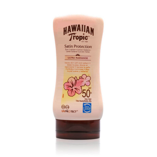 Indulge in the tropical essence of Hawaiian Tropic Satin Protection Sun Lotion SPF50. This luxurious, lightweight sunscreen not only offers broad-spectrum UVA and UVB protection but also envelops your skin in a silky, radiant finish. Infused with nourishing botanicals and the brand's signature exotic fragrance, it's your perfect companion for sun-soaked adventures.