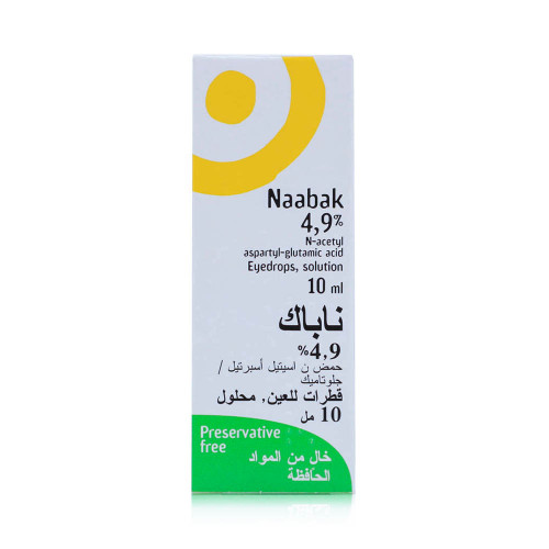 Naabak eye drops is used for giant papillary conjunctivitis and other conditions. Naabak eye drops contains n-Acetyl aspartyl glutamic acid as an active ingredient.