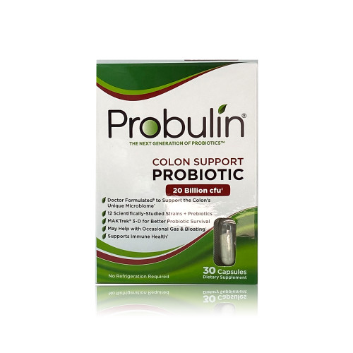 Probulin Colon Support is a targeted daily probiotic designed to support digestive health, particularly in the colon. Featuring 12 scientifically selected probiotic strains and a unique delivery system, it promotes a healthy microbiome, eases bloating, and enhances immune function—without the need for refrigeration.