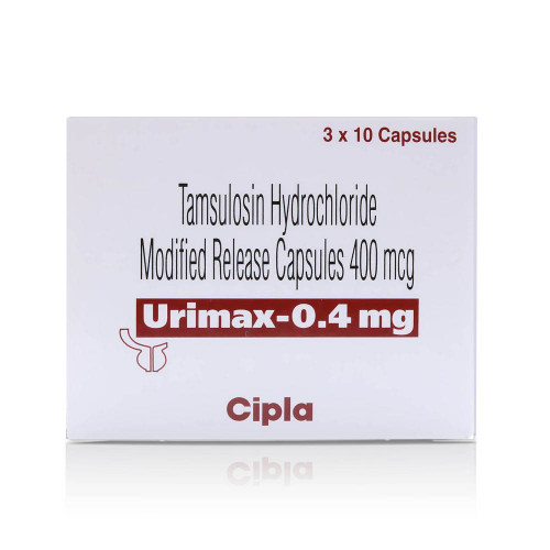 Urimax 0.4 mg capsule is an alpha-Adrenoreceptor antagonist which is used in men to decrease the urine outflow resistance due to an enlarged prostate gland. This medicine should be used with caution as it may lower the blood pressure. It is not recommended in patients with a known history of allergy to tamsulosin and patients with a risk of erectile dysfunction.