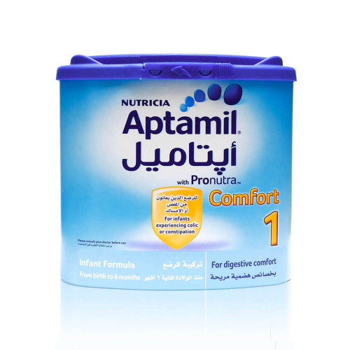 Aptamil Comfort 1 is a specialized infant formula designed for babies from birth to 6 months who experience digestive discomfort such as colic, gas, or constipation. With partially hydrolyzed protein and reduced lactose, it is gentle on delicate tummies while providing complete and balanced nutrition. Enriched with DHA, vitamins, minerals, and prebiotics, it supports healthy growth, brain development, and immunity in the first crucial months of life.