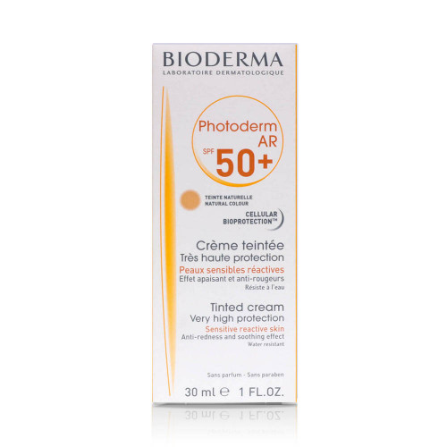Bioderma Photoderm AR SPF50+ is a tinted sunscreen that offers very high sun protection while addressing redness and sensitivity. Its unique formula not only shields your skin from harmful UV rays but also soothes and reduces redness, providing a natural, even complexion. Ideal for those with rosacea or reactive skin, this cream ensures comfort and protection throughout the day.